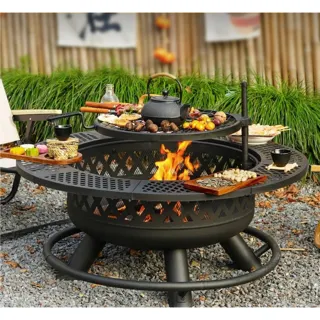 하로나 올인원 캠핑 화로대 대형 야외 원형 화로 테이블형 캠프파이어 불멍 바베큐 그릴, 1세트
